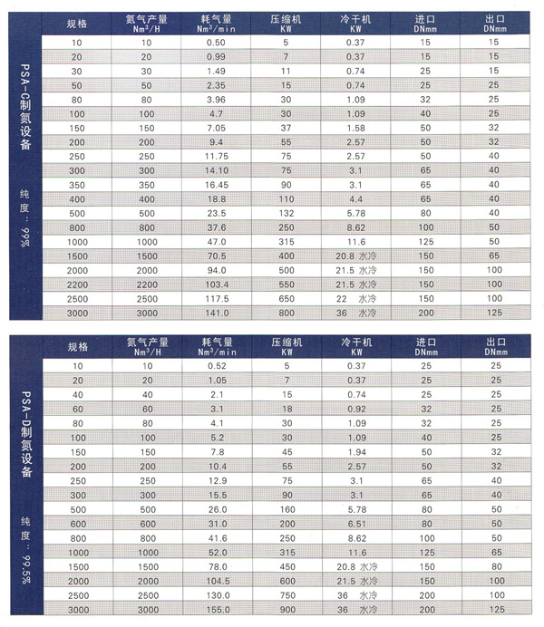 制氮機(jī)-變壓吸附制氮設(shè)備技術(shù)參數(shù)