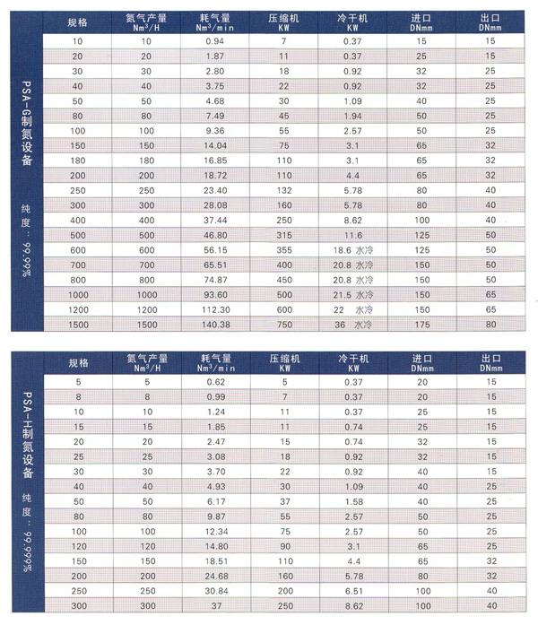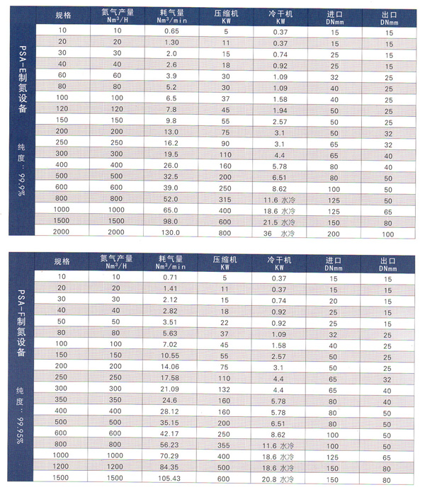 制氮機(jī)(制氮設(shè)備)技術(shù)參數(shù)
